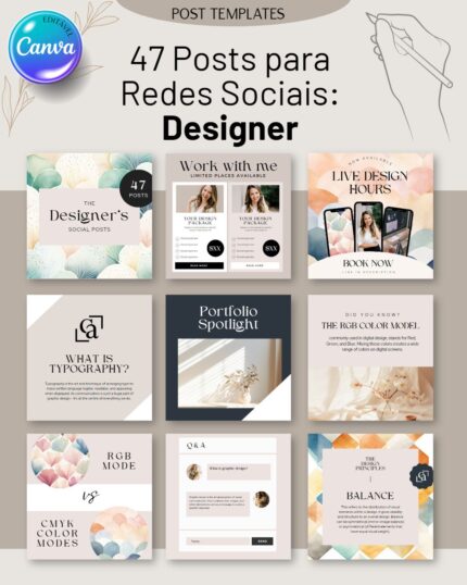 Inspire e transforme vidas com o pacote “30 Posts Redes Sociais: Coach Bem-estar”. Este conjunto foi criado para coaches e profissionais de bem-estar que desejam promover os seus serviços e conteúdos de forma eficaz nas redes sociais. Cada post é desenhado para ser inspirador e motivador, ajudando a educar e guiar o seu público rumo a uma vida mais saudável e equilibrada. Com templates editáveis no Canva, pode personalizar cores, textos e imagens para refletir a sua mensagem e estilo.